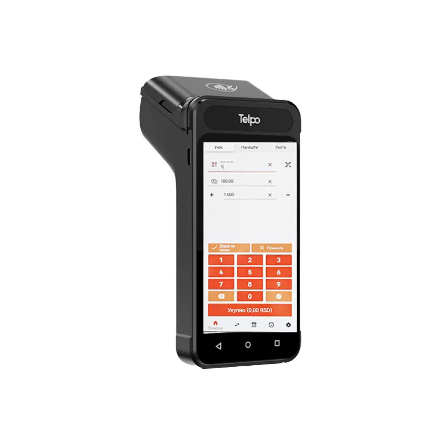 Kompaktan Android POS terminal sa integrisanim štampačem i podrškom za kartično plaćanje, idealan za rad na terenu i u pokretu. All-in-one uređaj koji kombinuje fiskalizaciju, naplatu i skeniranje u jednom.